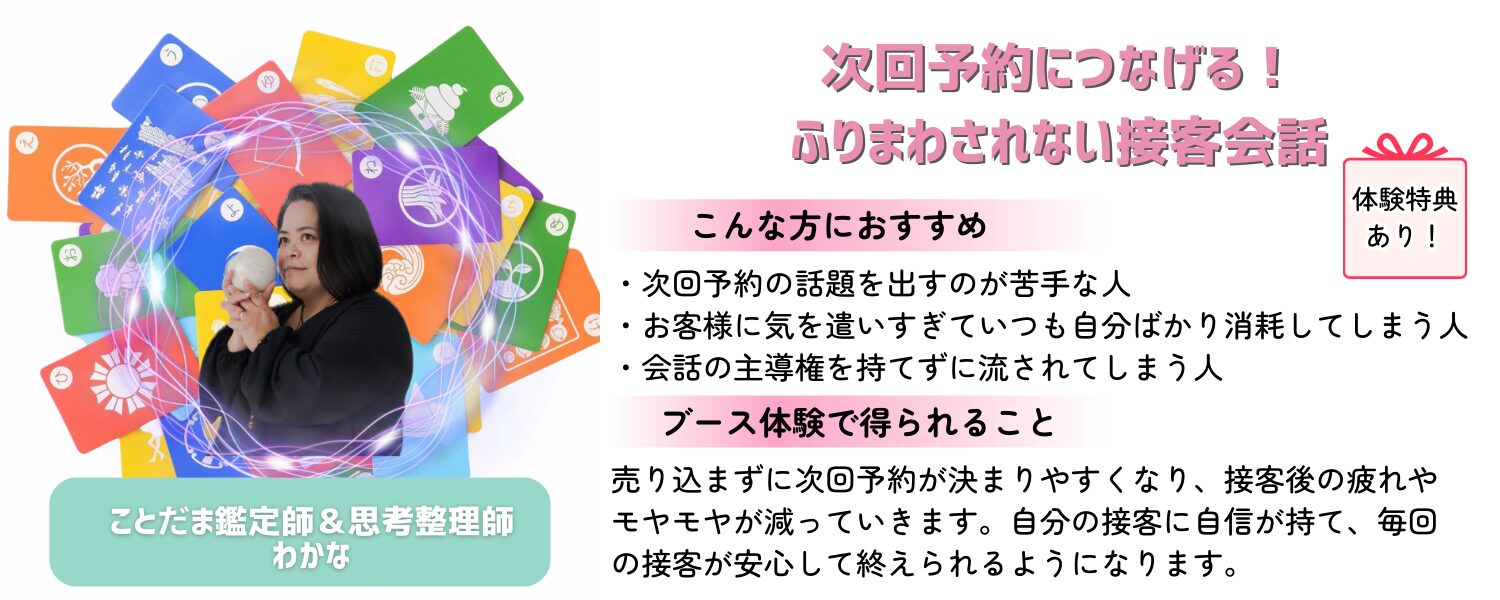 いいえ、予約をしなくて当日会場にて空いてるブースにて受けることができます✨受けたいブースが決まっていない場合も、ぜひ来場者予約をお願いします。▶︎来場者予約はこちら